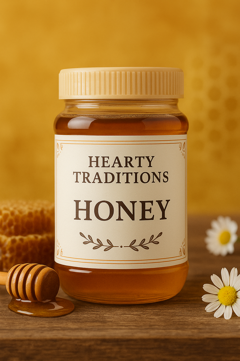 “Pure, natural, and golden sweetener harvested with care. Packed with antioxidants and nutrients, Hearty Traditions Honey is perfect for daily wellness, adding natural sweetness and health to your life.”