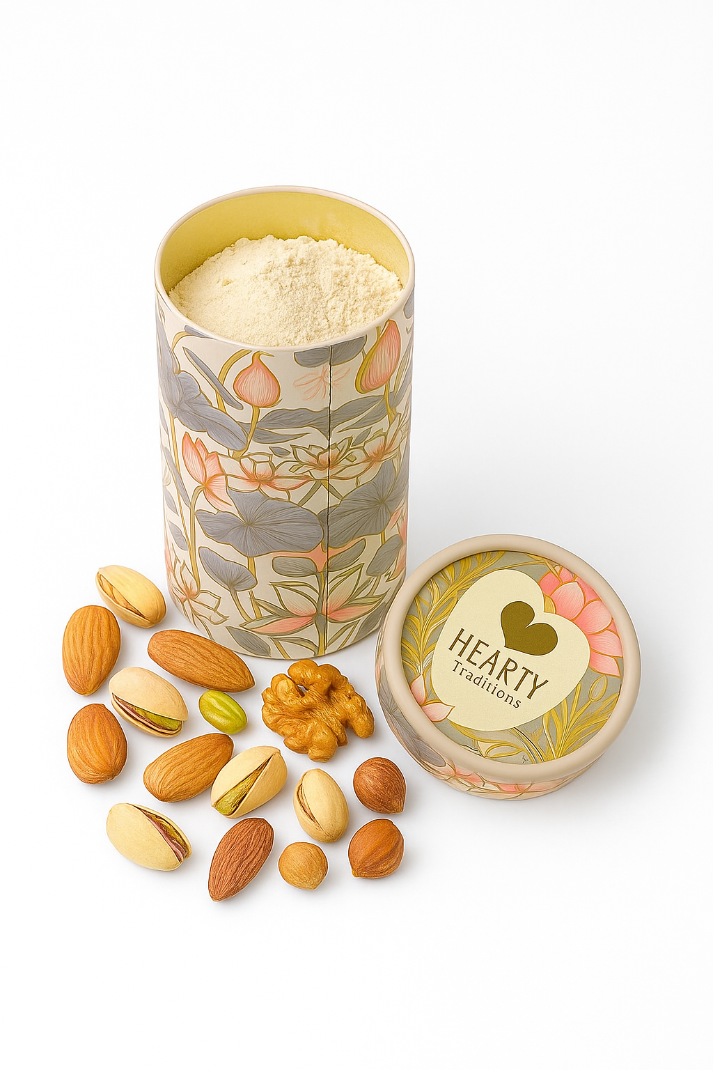 “A wholesome blend of premium nuts, finely ground to preserve natural nutrients and flavor. Packed with protein, healthy fats, and essential vitamins, this nourishing powder is perfect for boosting energy, supporting growth, and adding a delicious nutty richness to milk, porridge, or desserts.”